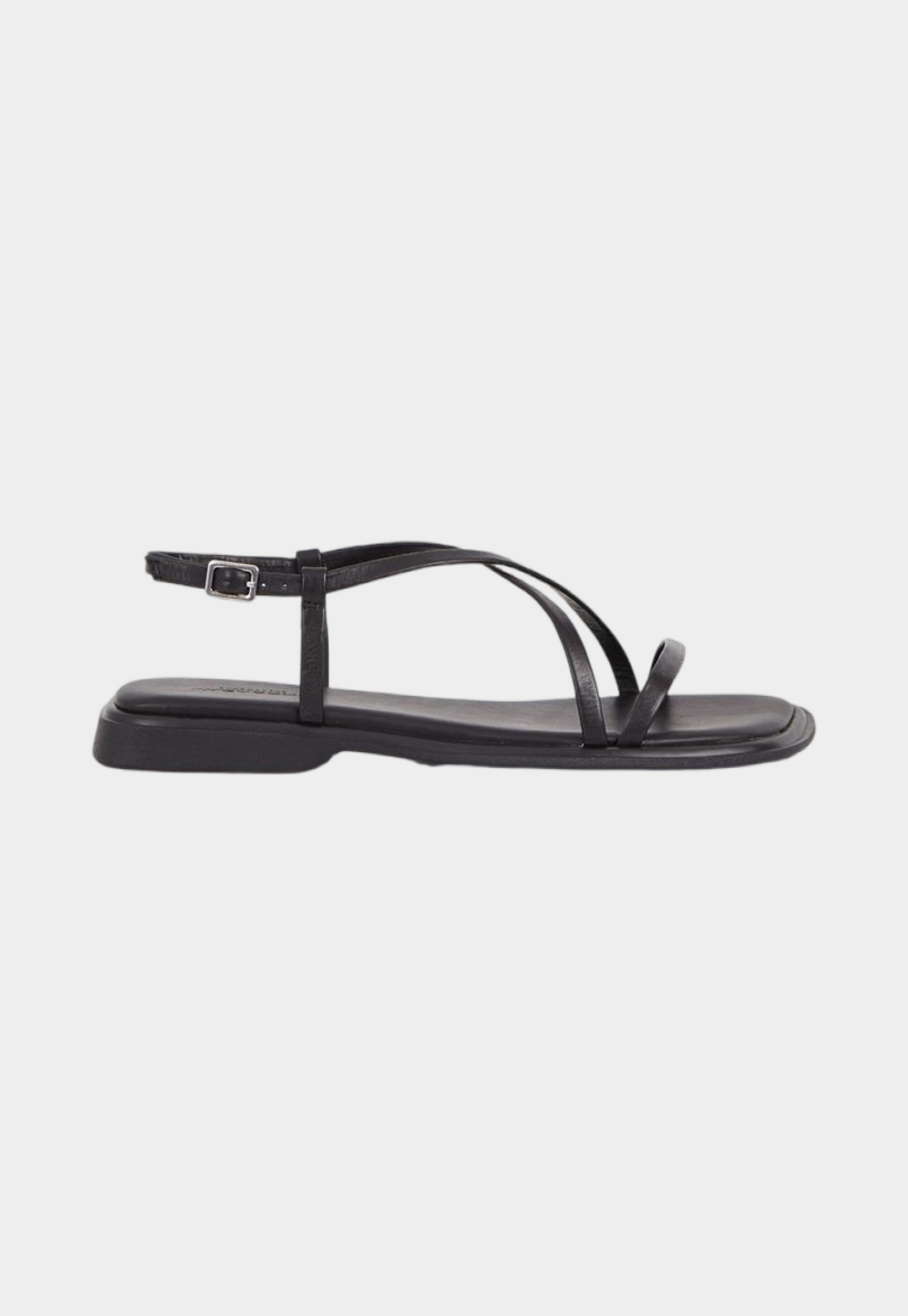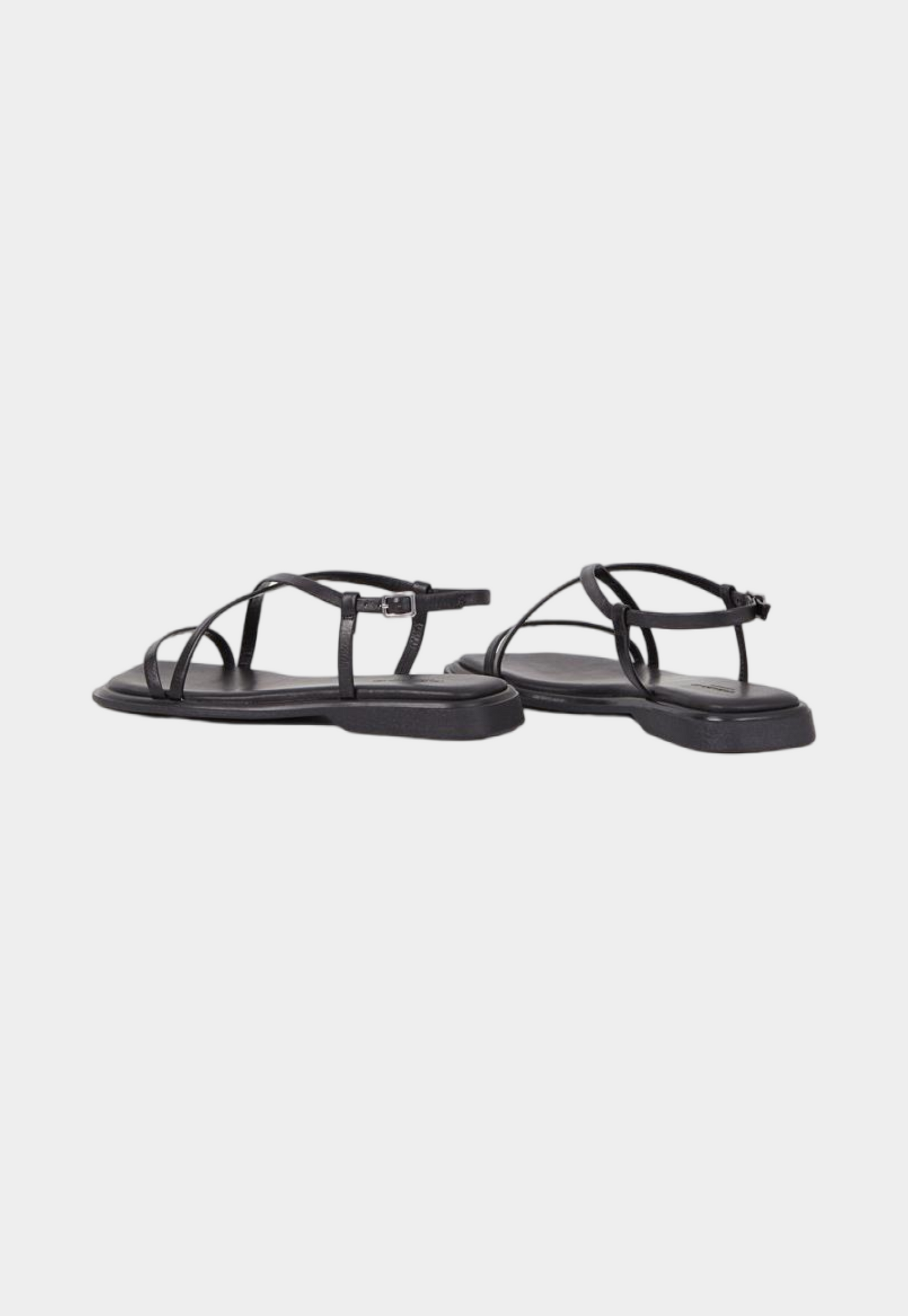 סנדלים לנשים מבית המותג ואגבונד. סנדלים מינימליסטיים עם מראה אלגנטי ונקי. הדגם מעור שחור עם רצועות דקות מוצלבות, רצועת עקב מתכווננת וסגירה עם אבזם כסוף. בעלי סוליה דקה ורפידת עור פנימית לנוחות מירבית. גובה הסוליה: 2 ס"מ.