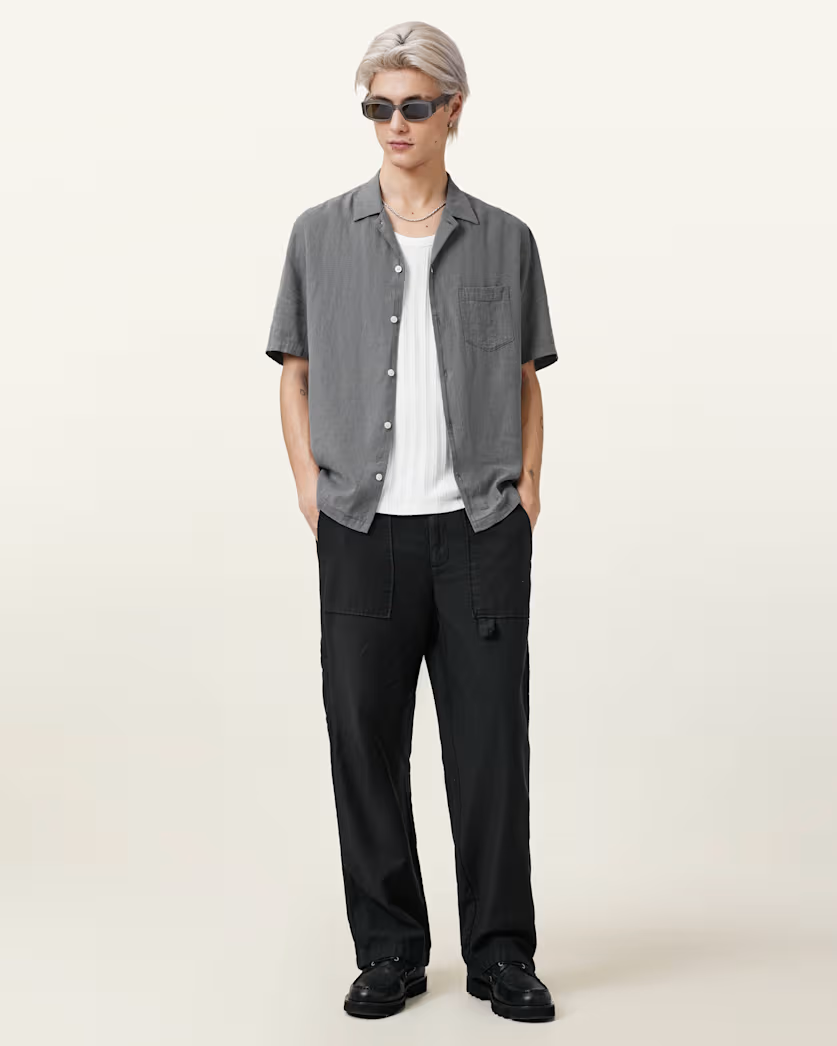 חולצה מכופתרת קצרה לגברים מבית המותג אולסיינטס. בגזרה משוחררת, עם כפתורי סגירה לכל האורך, צווארון שטוח ושרוולים קצרים.