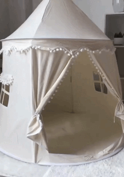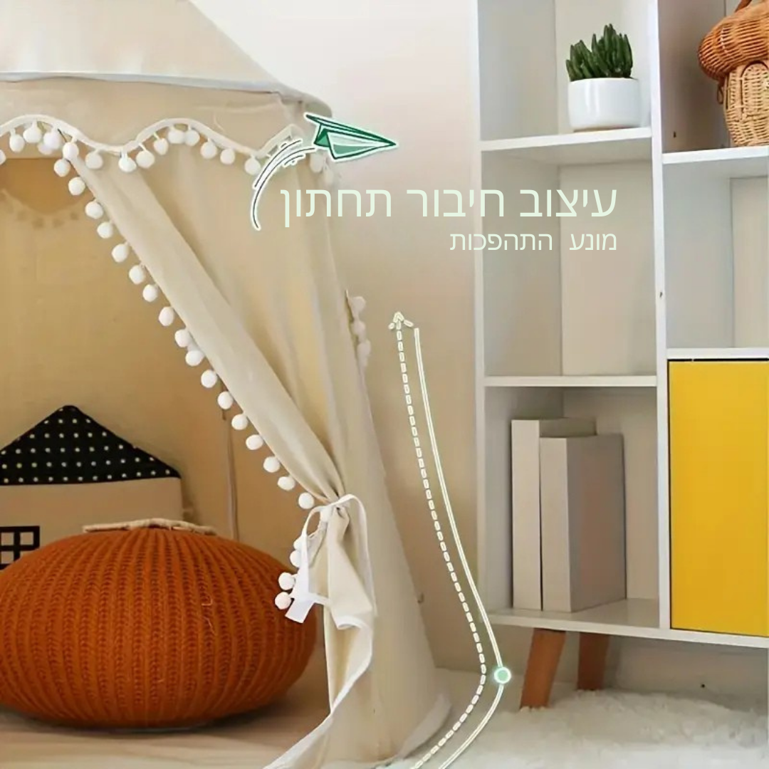 צורת אוהל: עיצוב טריאנגולרי עם נושא טירה כיפי.