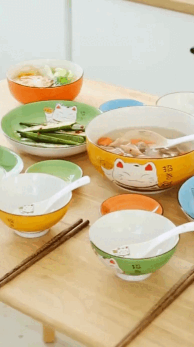 אוהבים את העיצוב החמוד של החתול שמוסיף שמחה לארוחות.