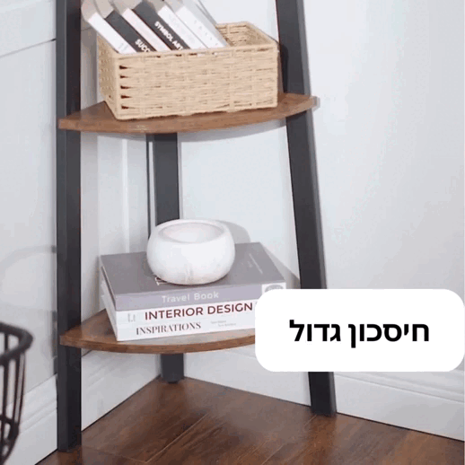 🔥 מדף ספרים פינתי לאחסון חסכוני במקום