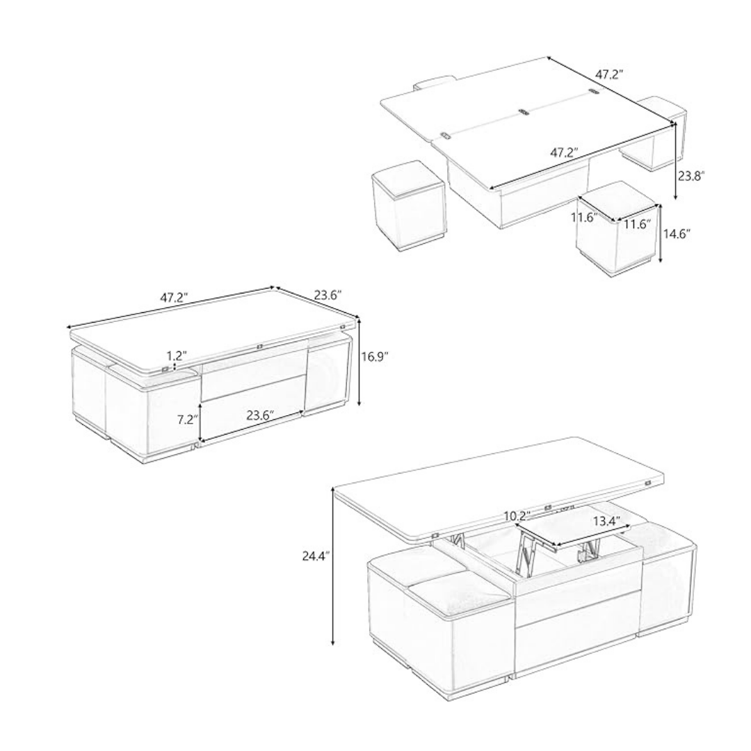 מידות המוצר: 47.2" עומק x 23.6" רוחב x 16.9" גובה